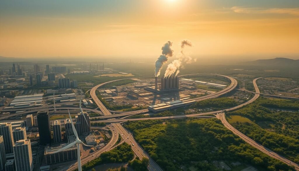 The shift to renewable energy is key for America’s green future. It cuts down on harmful emissions and fights climate change. It also brings in clean energy jobs and boosts local economies.